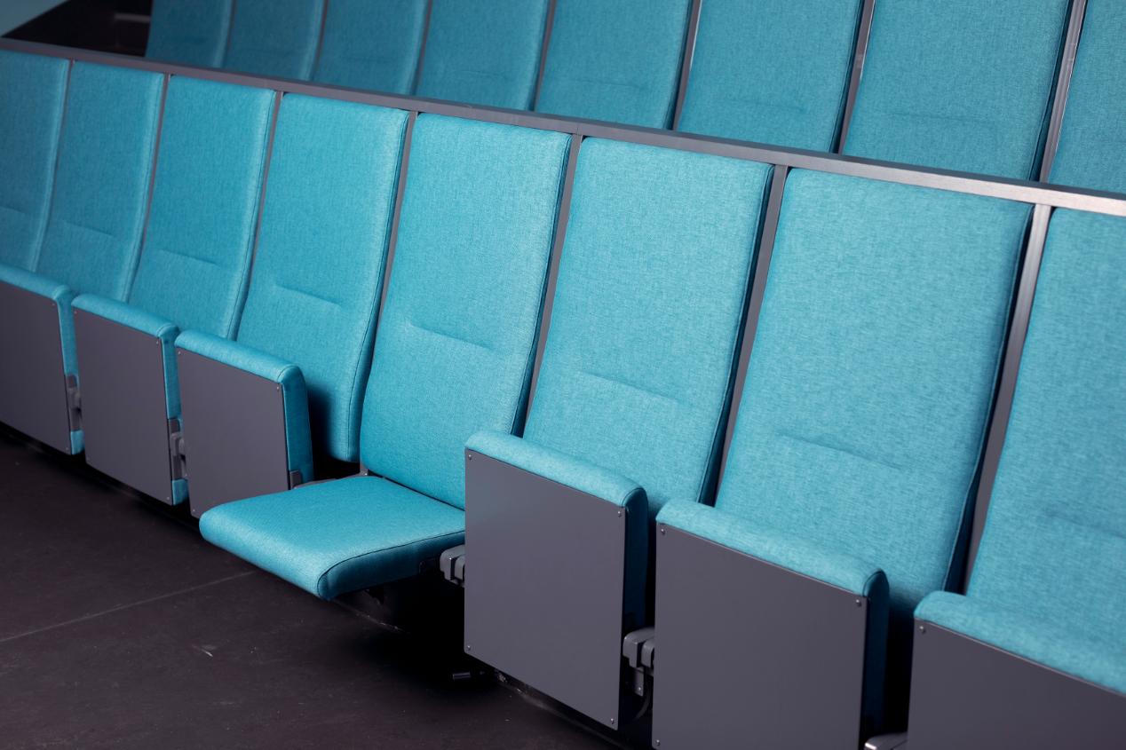 − Aulan är verkligen fin och välgjord i allt från konstruktion och teknik till material och färger. Stolarna är väldigt bekväma. Tyget är tåligt och det är viktigt. Förutom att uppfylla alla de krav på arbetsmiljö, brand- säkerhet och slitstyrka som krävs i en offentlig miljö är det väldigt skönt att sitta i stolarna och det är jättehärlig färg på tyget. Tillsammans med den övriga inredningen blir det en riktig färgexplosion.