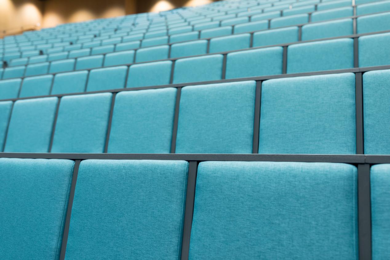Balzar Beskow tillverkar allt från enstaka möbler till hela inredningar. Kostnaden för möbeltyg skiljer sig mycket mellan leverantörer och är det stora volymer kan prisskillnaden bli flera hundra tusen kronor. I det här fallet föll valet på tyget Lido som nu pryder sitsarna på totalt 580 stolar i den nya aulan och intilliggande hörsalar. När anbud tagits in och alternativen granskats var det tyget från Nevotex som bäst uppfyllde de högt ställda kvalitets- och kostnadskraven kombinerat med de färger och egenskaper som arkitekten önskade.