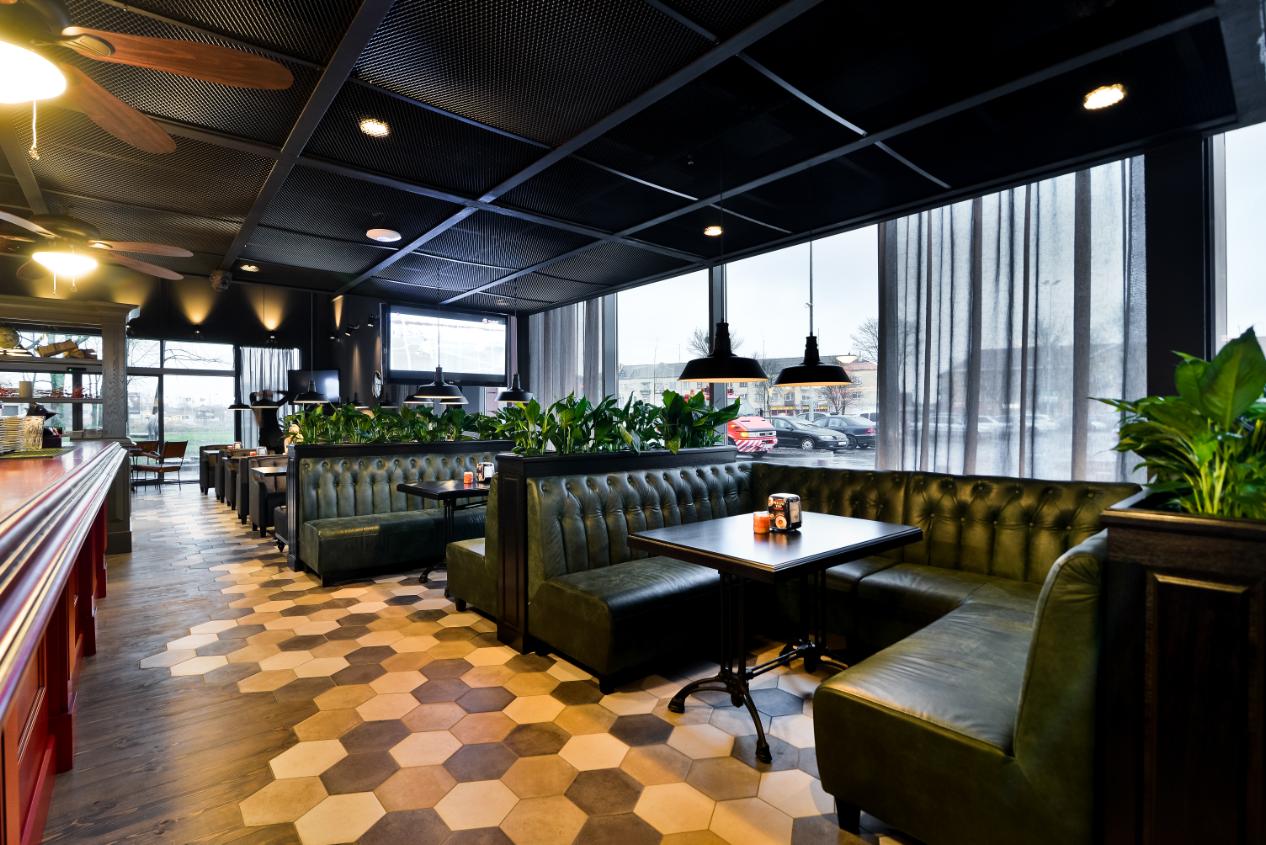 På restaurangkedjan Grill London i Litauen står hållbarhet och komfort i fokus. Både när det gäller maten och interiörerna.