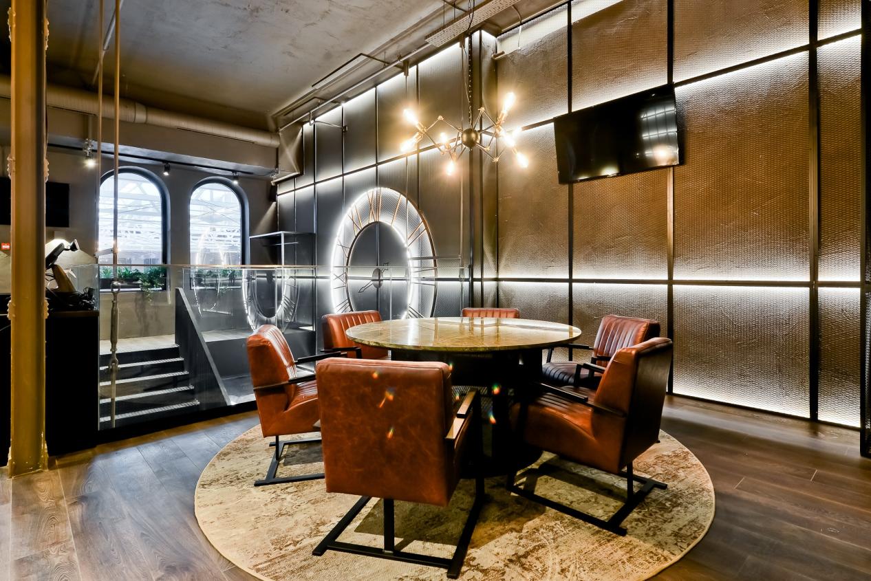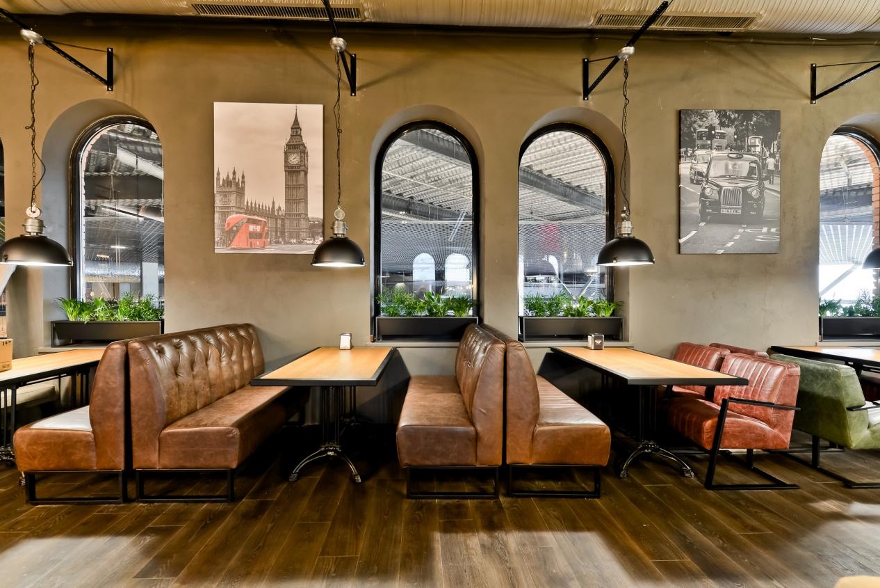 Inredningen är inspirerad av svunna tiders London. För att ge möblerna den rätta vintagekänslan har Nevotex levererat ett slitstarkt aninlinläder – ett material som harmonierar med den övriga inredningen och samtidigt bidrar till en bekväm upplevelse för gästerna.
